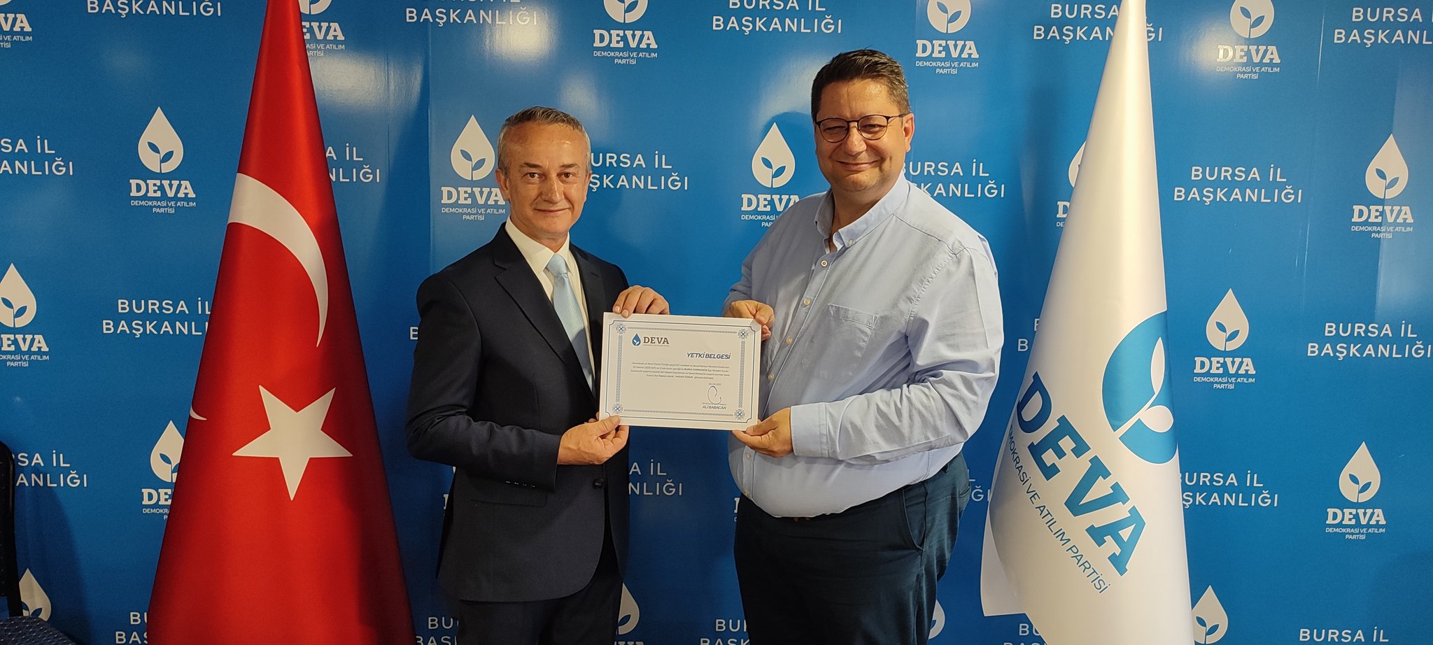 DEVA Harmancık İlçe Başkanı olarak Hasan Tosun görevlendirilirken, yetki belgesini İl Başkanı Özgöz verdi.