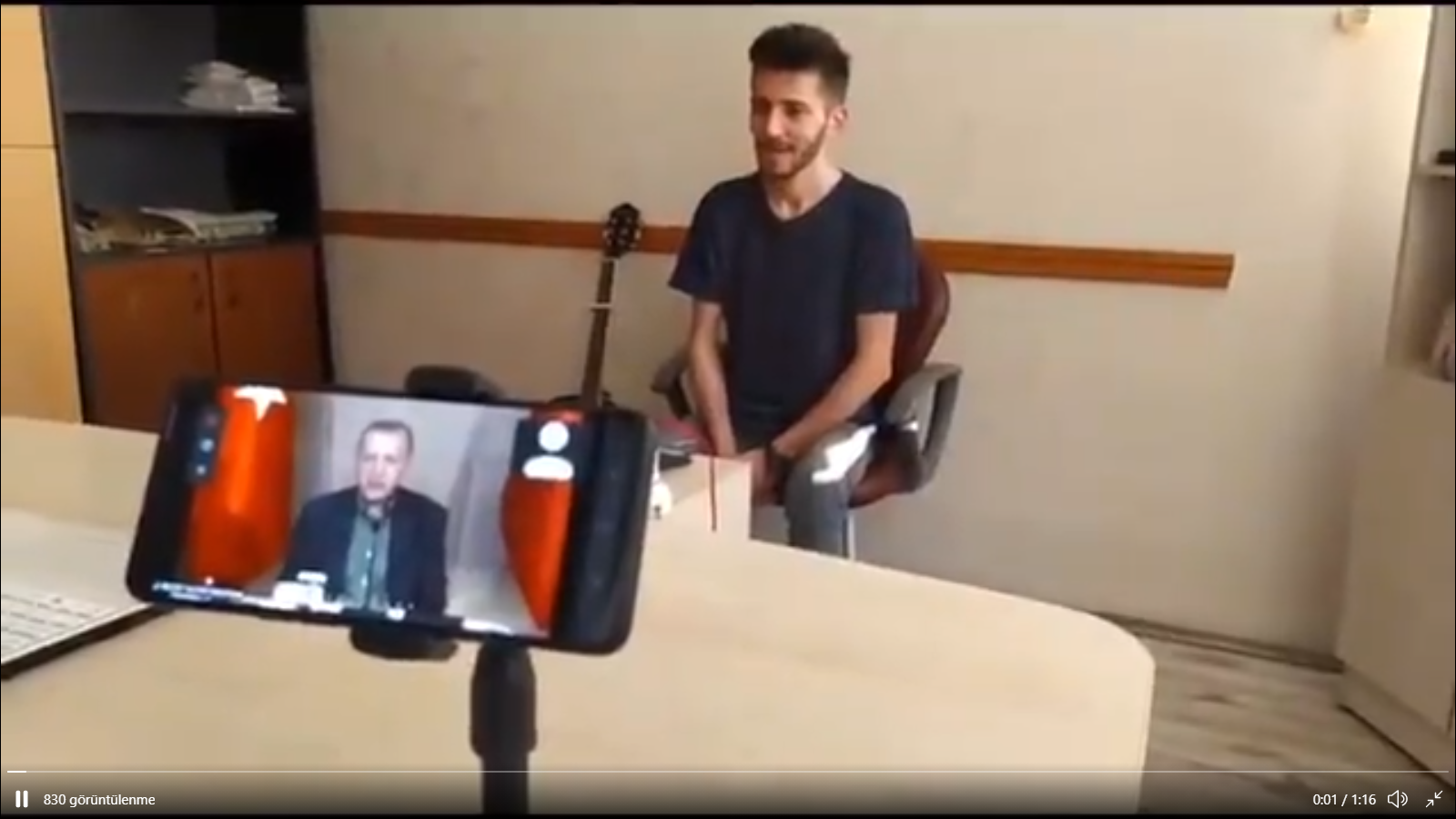 Bu programa Bursa AK Parti gençliği adına Karacabey’den Emre Çelik katıldı. Cumhurbaşkanı Erdoğan için kendi şarkısını gitarıyla çalıp söyleyen Emre Çelik şarkısının ardından “En büyük isteğim sizinle tanışmak” dedi.
