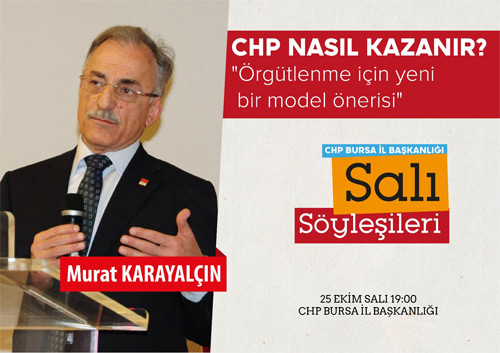 25 Ekim Salı günü saat 19.00’da CHP İl Başkanlığı’nda başlayacak programda “CHP nasıl kazanır?” sorusuna cevap arayacak olan Karayalçın ayrıca “örgütlenme için yeni bir model önerisi” ile ilgili görüşlerini açıklayacak.