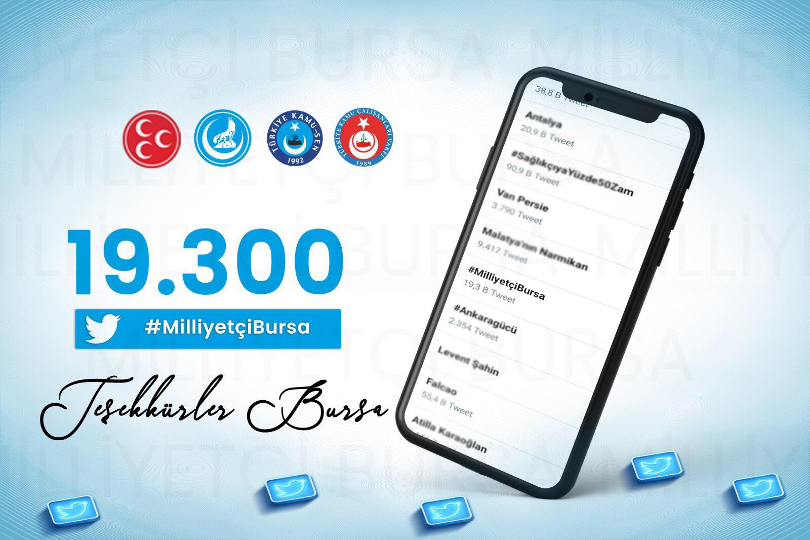 Herkesin kısıtlama nedeniyle evlerinde bulunduğu cumartesi gecesinde MHP Bursa’nın sosyal medya hareketi oldu ve 19 bin 300 tweet’le Türkiye’deki en popüler gündem başlıkları arasına girdi.