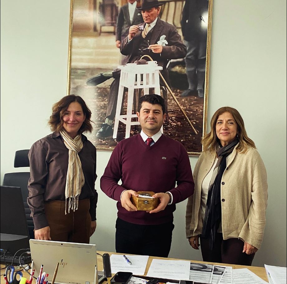 GEA temsilcileri Av. Baran Güneş’e tahta bir kutu armağan ettiler.