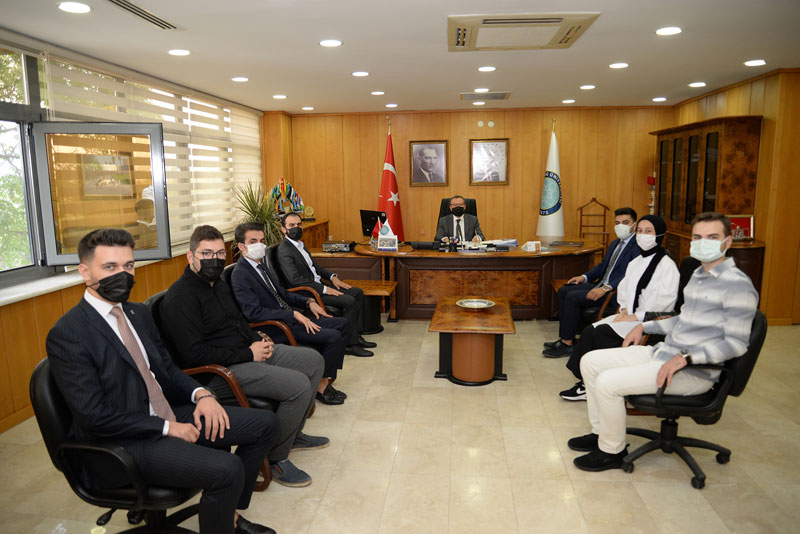 AK Parti İl Gençlik Kolları Başkanı Ömer Faruk Temiztürk ve yönetimini kabul eden Prof. Dr. Kılavuz, gençlerle yeni dönemde üniversite eğitimi üzerine sohbet etti.