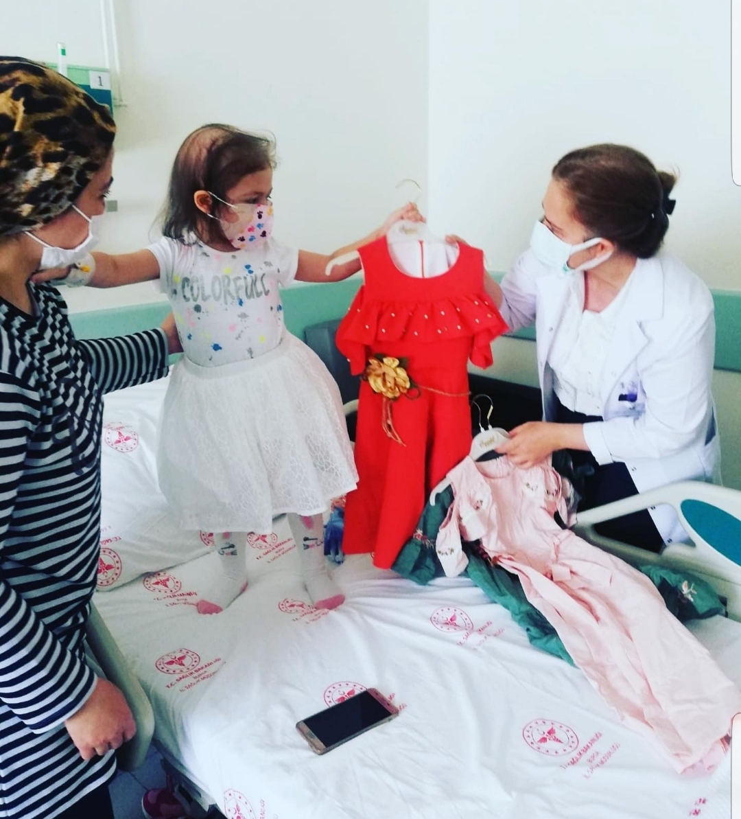 Elif Hoca hastanede hemofili tedavisi gören çocuklara yardımseverlerin hediyelerini paylaşırken, mutluluğu da yansıttı.