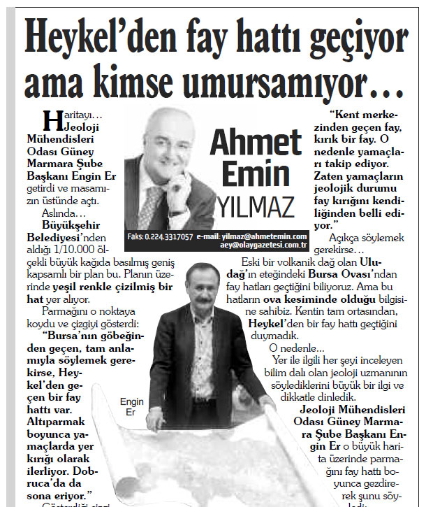 Gerçi… Ülkemizin tamamı deprem kuşağı üzerinde, ama Bursa’nın birinci derece deprem bölgesi olduğunu ve fay hatları üzerinde yaşadığımızı bilimsel bir gerçek.