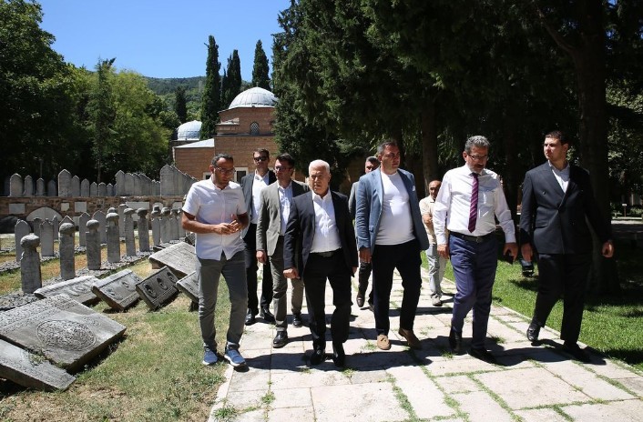 Büyükşehir Belediye Başkanı Mustafa Bozbey cuma namazı için gittiği Muradiye Külliyesi’nde sultan türbeleri ve sergilenen eşyaları gezdi, “Tarih ve kültürü tanıtıp Bursa’mızın hak ettiği ilgiyi görmesini sağlayacağız” mesajı verdi.
