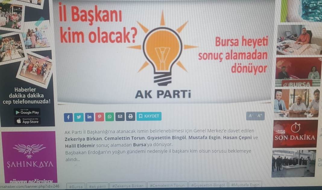 Randevu… Cumartesi saat 13.00 olarak İstanbul’daki Vahdettin KöşKü’ne verilmişti. AK Parti’nin 6 il başkanı adayı, Cumhurbaşkanlığı kullanımındaki bu köşkte Cumhurbaşkanı Recep Tayyip Erdoğan’la öğle saatinde görüşecek ve içlerinden biri Bursa’ya İl Başkanı olarak dönecekti.
