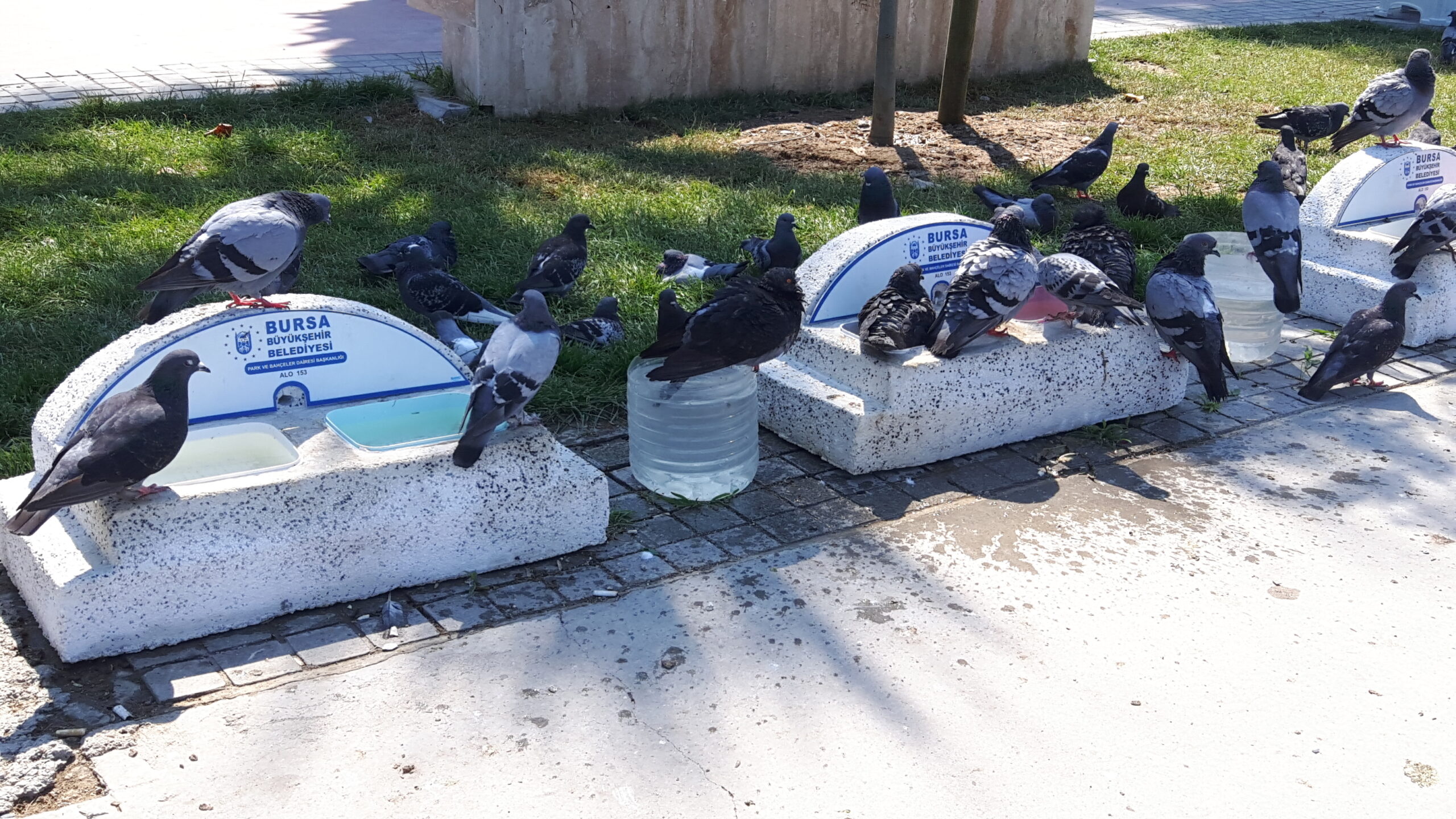 Büyükşehir Belediyesi’nin internet sitesinde bir fotoğraf daha çok ilgimizi çekti. Sahillerdeki banklar ve parklar elden geçirilip düzenlenirken, kuşlar da unutulmamış. Belli noktalara suluklar ve yemlikler konmuş.