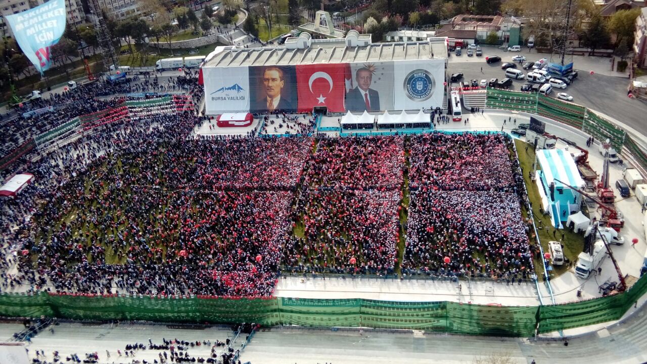 Bursa’nın en kalabalık mitingleri arasında yer alacak bir miting oldu. Bize göre, Cumhurbaşkanı Recep Tayyip Erdoğan da kampanyanın en keyifli mitingini yaptı.