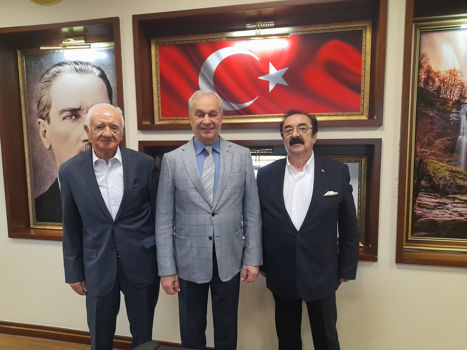 Hüseyin Çiftliklioğlu ve o dönem DYP İl Yönetim Kurulu’nda yer alan Kemal Gemlik’le birlikte Mustafakemalpaşa Belediye Başkanı Şükrü Erdem’i ziyarete gittiler.