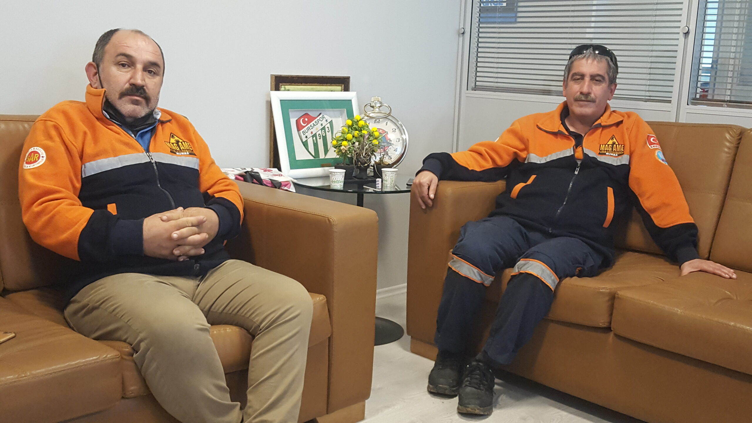Deprem riski nedeniyle Gemlik merkezli kurulan, Gemlik-Orhangazi bölgesinde eğitim vermedik okul bırakmayan Mahalle Afet Gönüllüleri Bursa İl Derneği Başkanı Yusuf Yumru ve Başkan Yardımcısı Yusuf Aygül ziyarete geldiklerinde, kurtarma anılarını zaman zaman hüzünlenip dinledik.