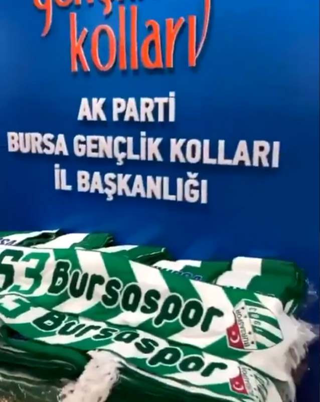 AK Parti İl Gençlik Kolları da yıldönümü nedeniyle Şehreküstü’de yüzlerce Bursaspor atkısı dağıttı.
