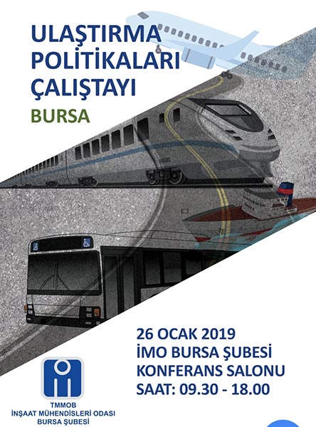 26 Ocak Cumartesi günü İnşaat Mühendisleri Odası Bursa Şubesi’nin konferans salonunda Ulaştırma Politikaları Çalıştayı var.