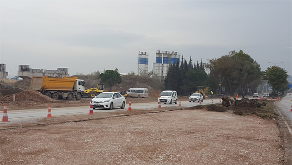 Arazi eğimi nedeniyle yerden yüksekte olacak istasyonu taşıyacak viyadük ayaklarının yapımı için, Mudanya Yolu trafiğinde geçici düzenlemeye gidiliyor.