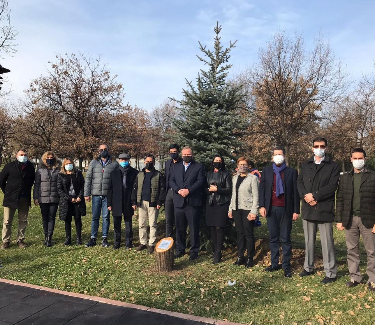 Bursa OSB Başkanı Hüseyin Durmaz ve yönetimiyle BOSİAD Başkanı Rasim Çağan ve yönetimi, eski başkanların da katıldığı törenle Deniz için Meşelipark’a ağaç diktiler.