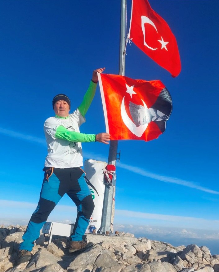 Atatürk’ün yaşama gözlerini yumduğu 10 Kasım Pazar günü saat 09.05’te Uludağ’ın zirvesinde, elinde Atatürk posterli bayrağıyla tek başınaydı.