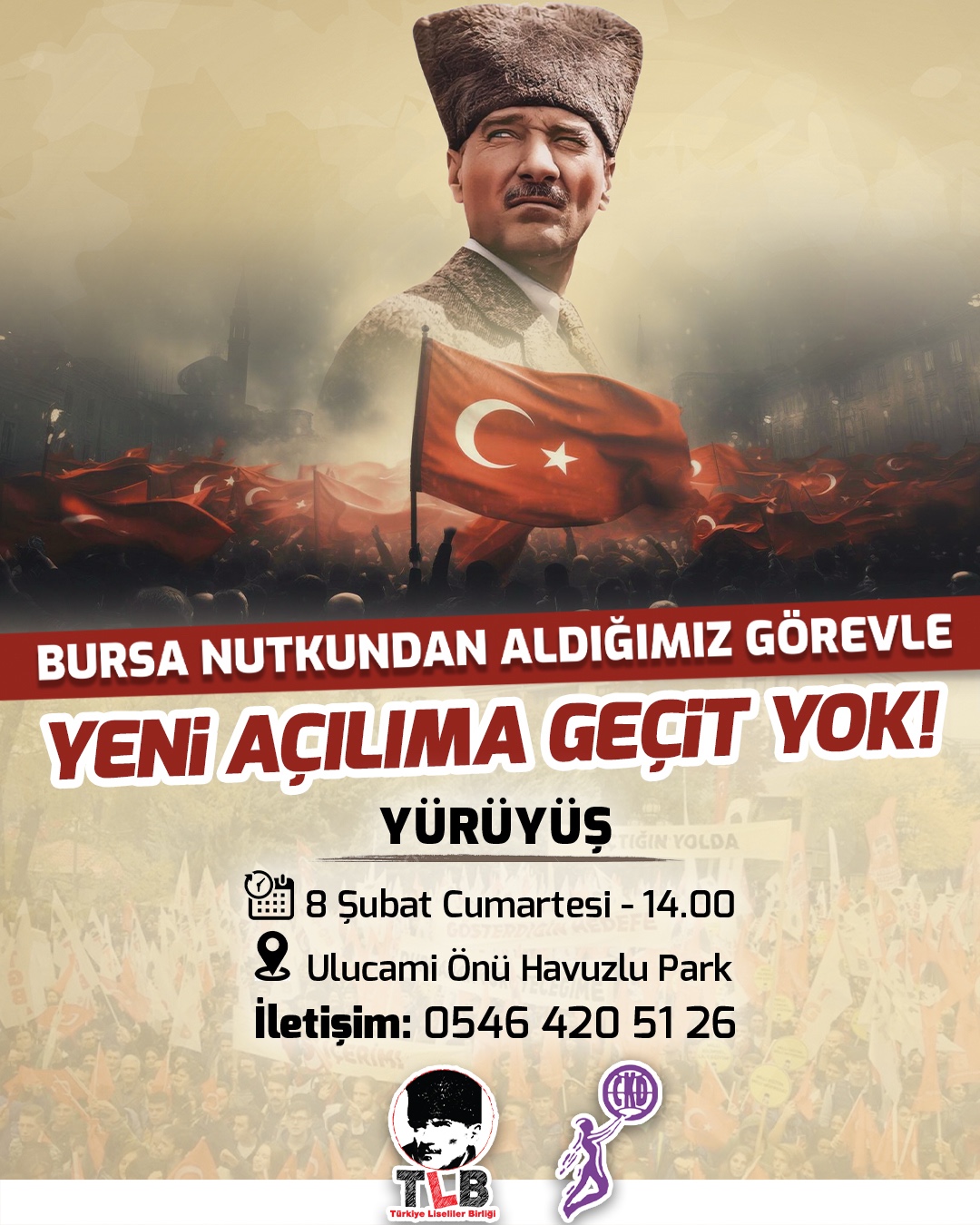 “Atatürk’ün Bursa Nutku’ndan aldığımız görevle yeni açılımlara yer yok” ibaresi yer alan yürüyüşün mottosu da “Terörsüz Türkiye adı altında PKK ile uzlaşma planı yapanları hüsrana uğratmak için Bursa’dan meydan okuyoruz” olarak belirlendi.