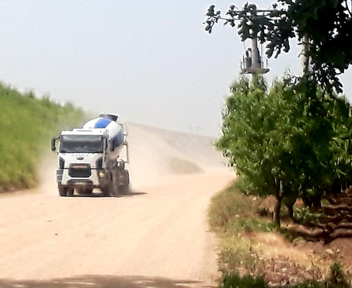 Demiryolu inşaatı için çalışan kamyonlar ve mikserler, toprak servis yollarından geçerken çok toz kaldırıyorlar. Çevrede bulunan meyve bahçeleri de bu tozdan aşırı derecede etkileniyor.