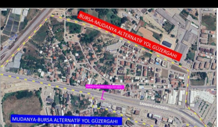Bu ilk üstgeçit için 12 Temmuz Cuma günü gece 01.00 saban 06.00 arası yol Bursa yönünde trafiğe kapatılacak.