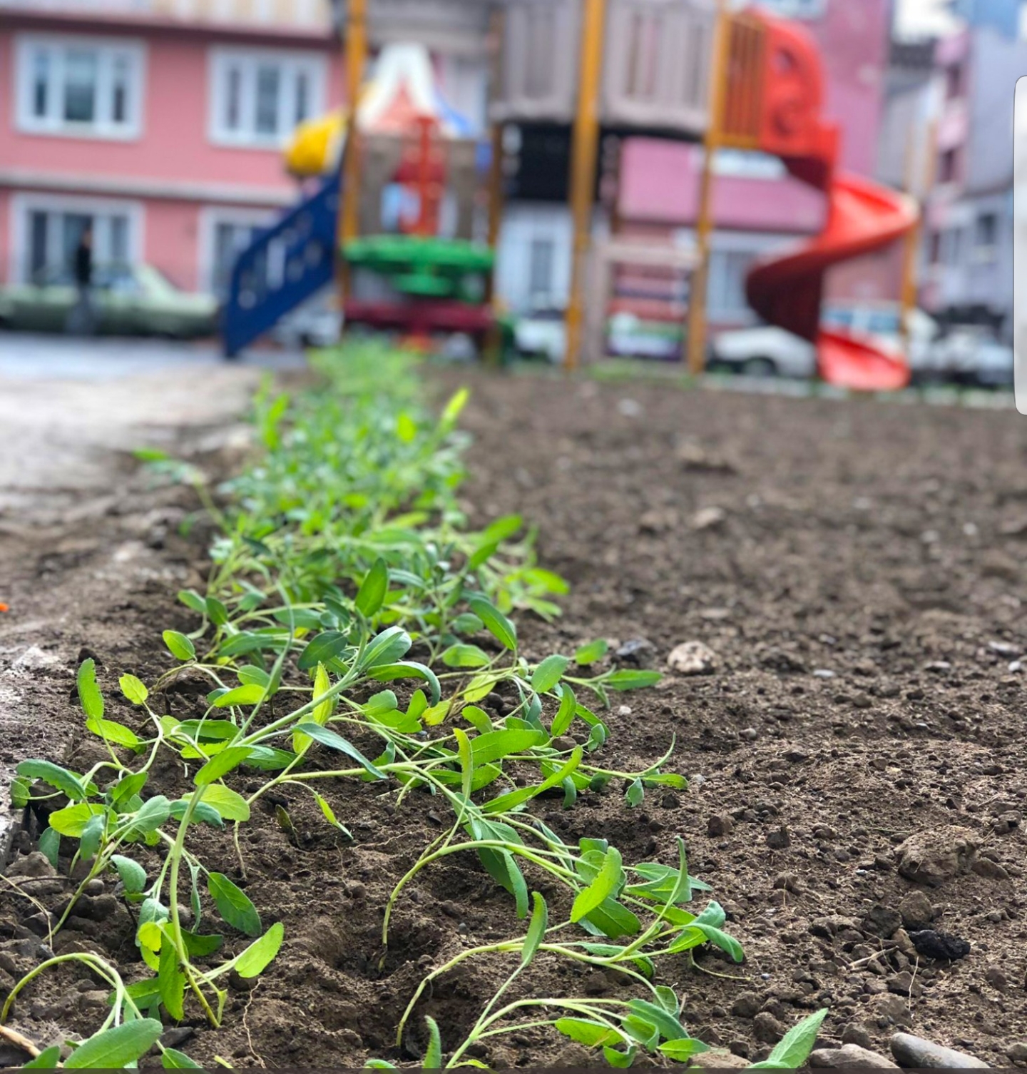 İlçedeki park alanlarında peyzaj çalışması yaparken, her yere adaçayı ekiyorlar.