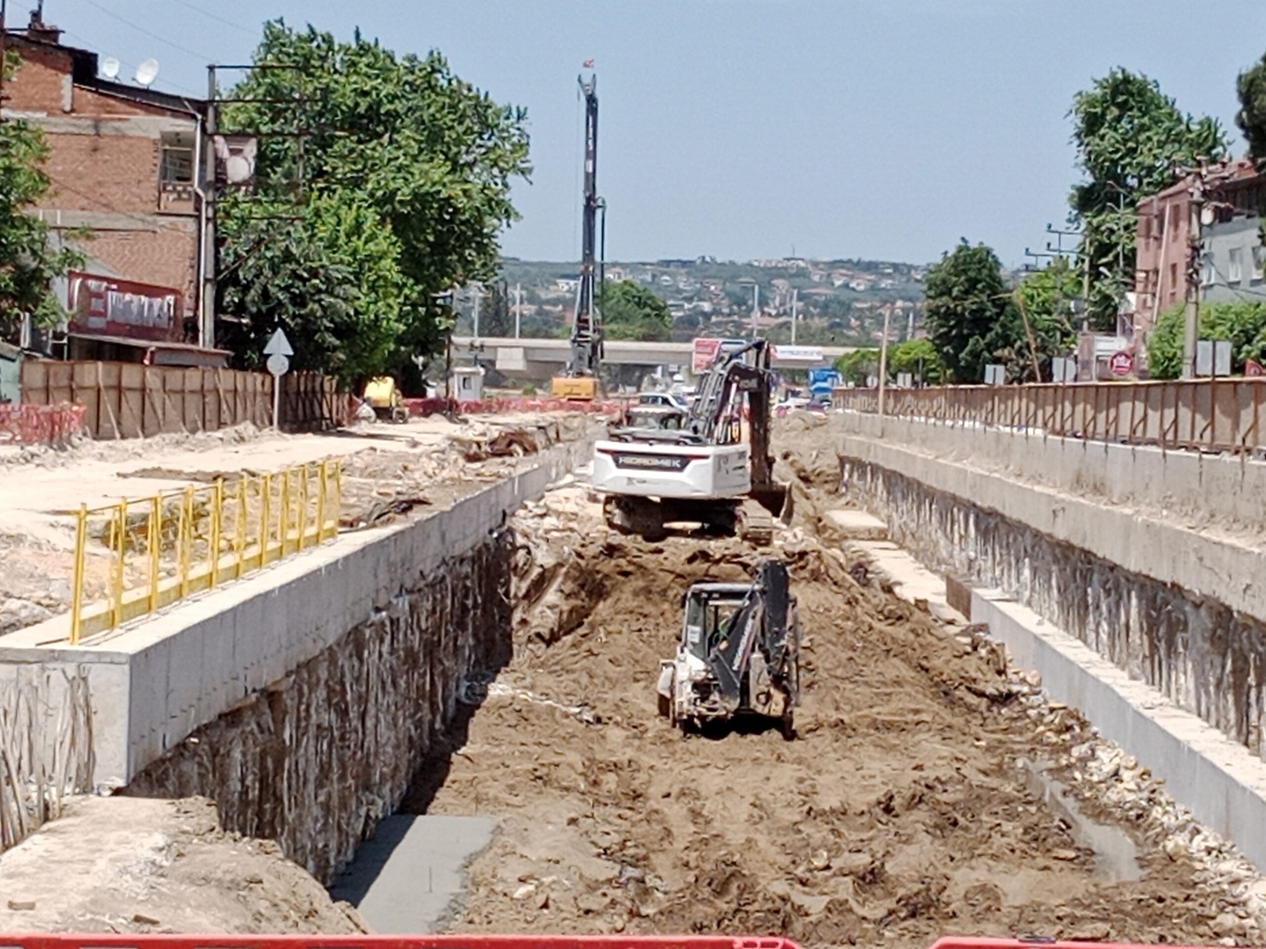 Bursaray’ı son durağı Emek’ten Şehir Hastanesi’ne uzatacak 6.1 kilometre uzunluğundaki metro için Geçit’te, altyapı deplase çalışmalarına geçen yıl haziranda başlandı. Eylül ayında yolun Mudanya’ya gidiş yönü kapatıldı.