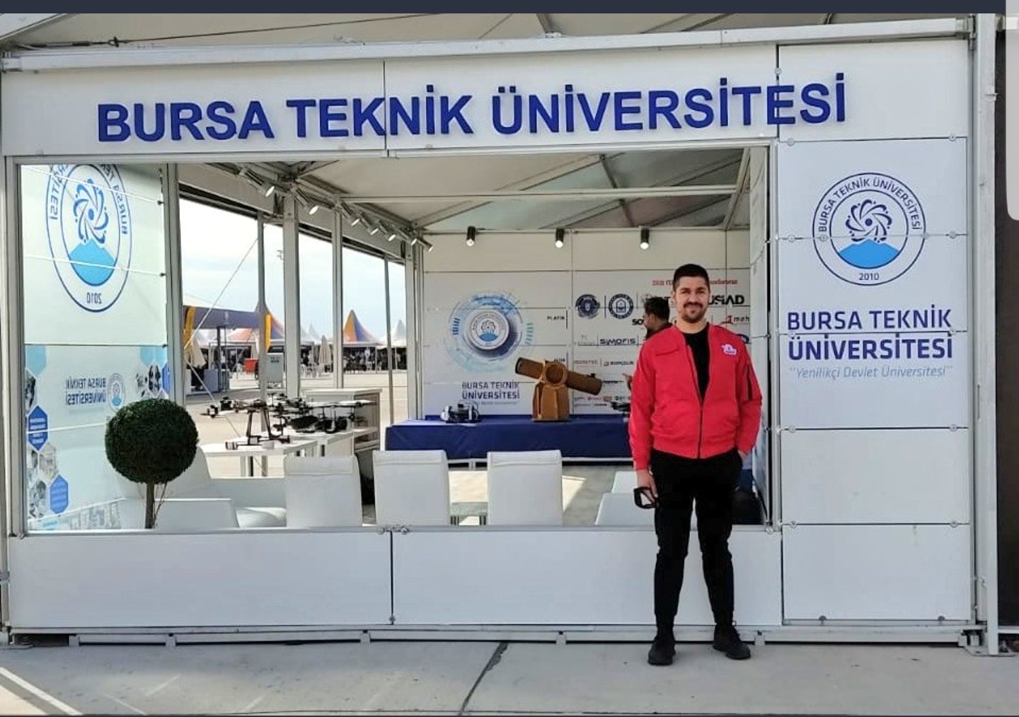 Sabah yarışmalar öncesi dolaşırken Bursa Teknik Üniversitesi standını görünce “hemşerilerimi buldum” diyen Edin anı fotoğrafı çektirdi.