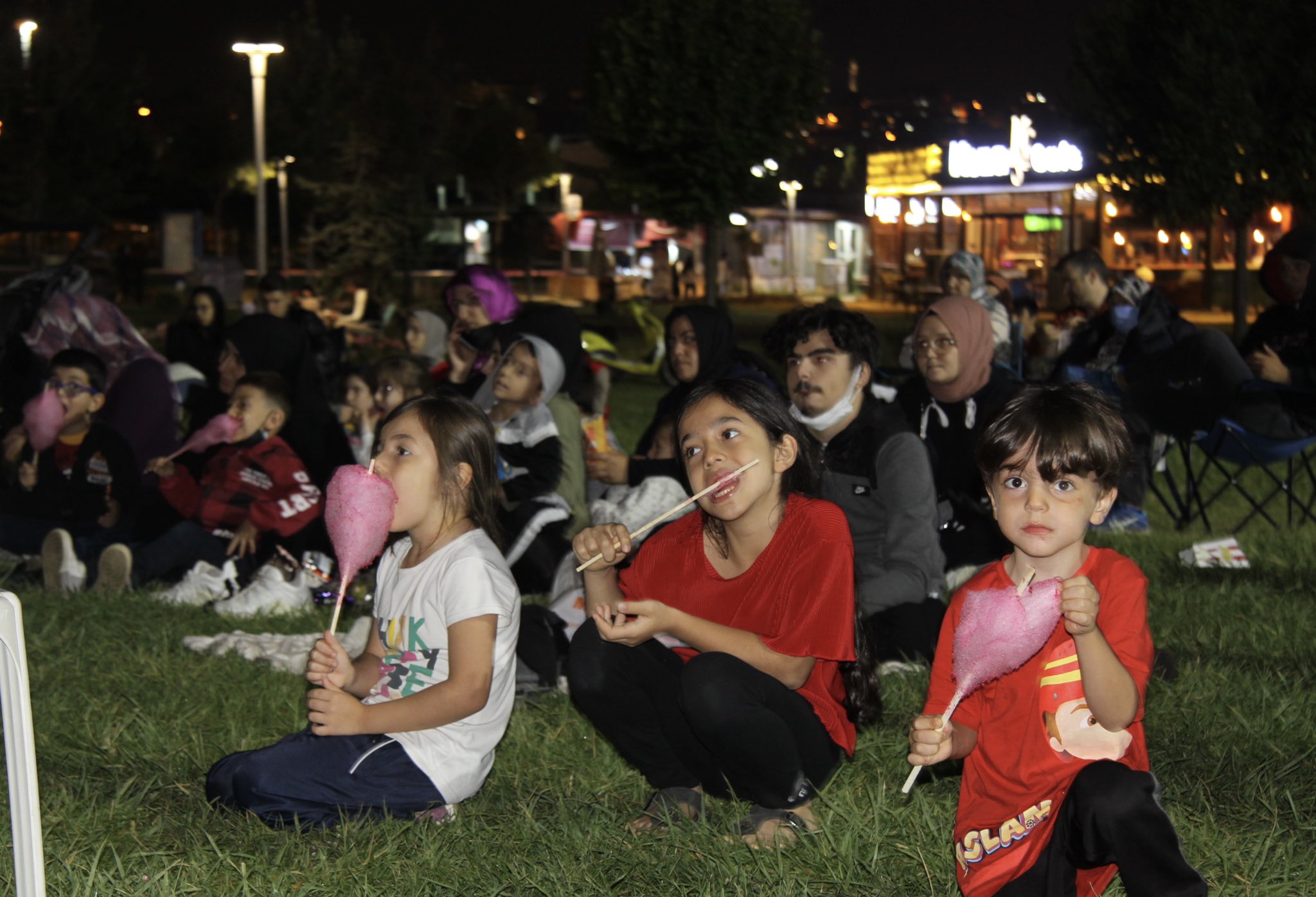 Genç Kızılay’ın Hüdavendigar Kent Parkı’nda çocuklar için patlamış mısır ve pamuk helvayla gerçekleştirdiği açık hava sineması etkinliği büyük ilgi gördü.
