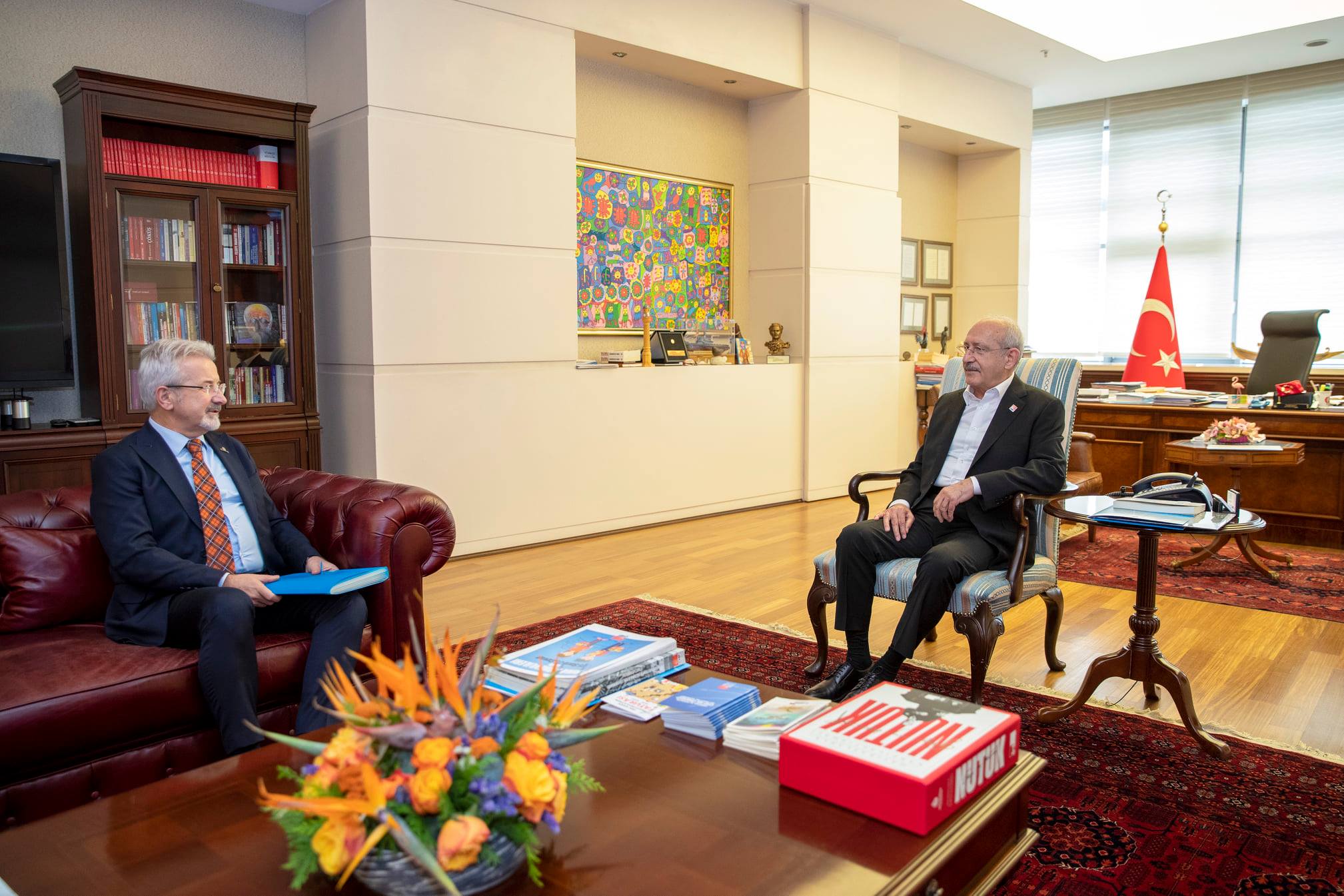 Elinde dosyayla oturduğu CHP Genel Başkanı Kemal Kılıçdaroğlu ile fotoğrafı ilgimizi çekti.