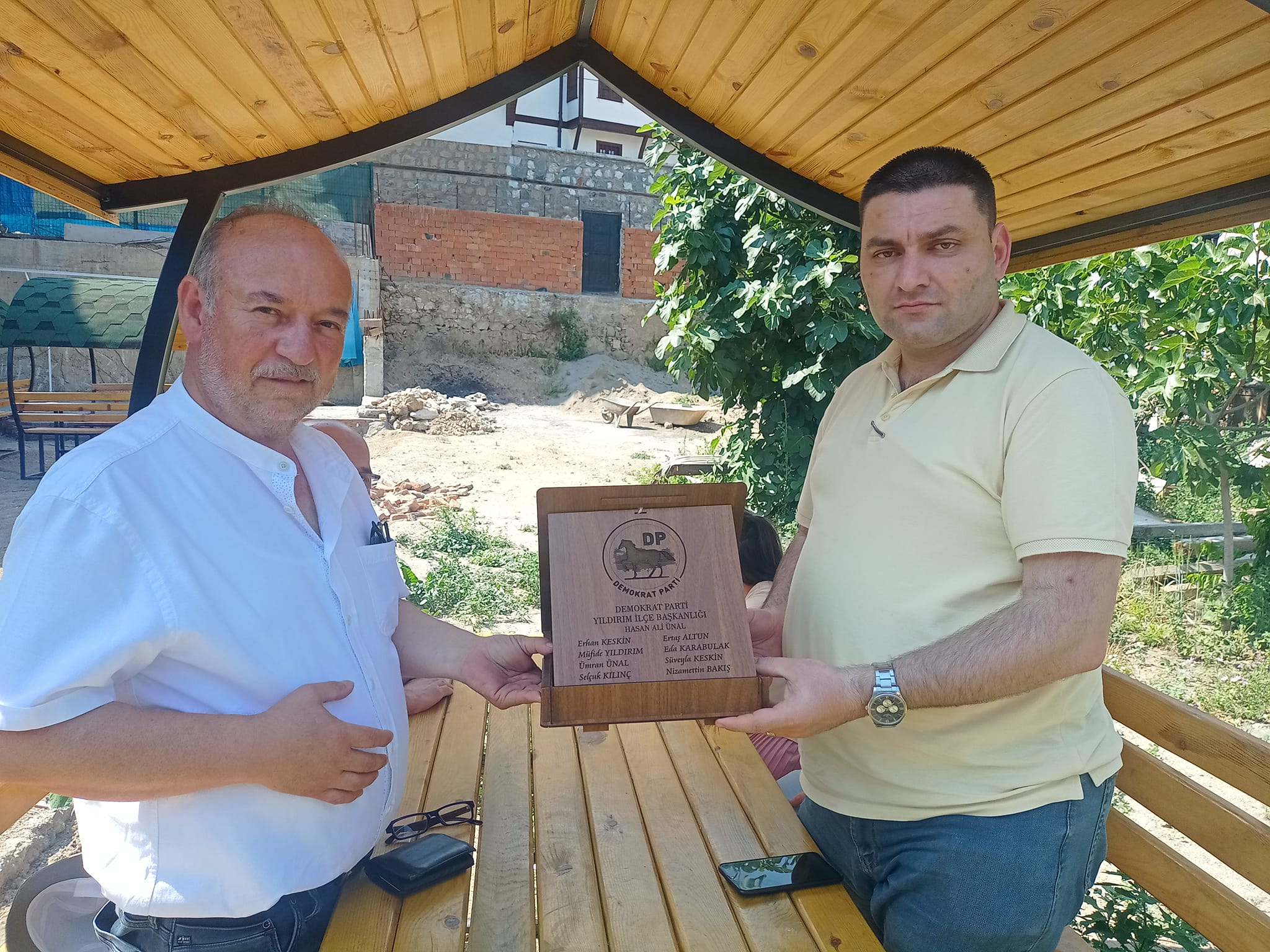 DP Yıldırım İlçe Başkanı Hasan Ali Ünal verirken, Yusuf Öz’e teşekkür etti.