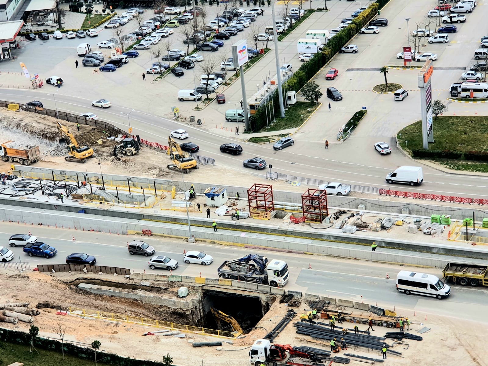 Yağmurda bir ara altgeçidi bu bastı, ama hızlıca temizlik yapıldı. İstasyonun çelik konstrüksiyonu da getirildi ve platformda montajı bekliyor.