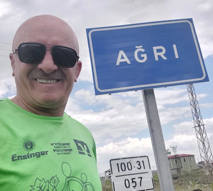 1.550 kilometre yol 23 saat, aracının direksiyonunda geçirip Ağrı’ya gitti ve Avrupa’nın ikinci en yüksek dağı olan 5 bin 137 metrelik Ağrı Dağı zirvesine tırmanış başlattı.