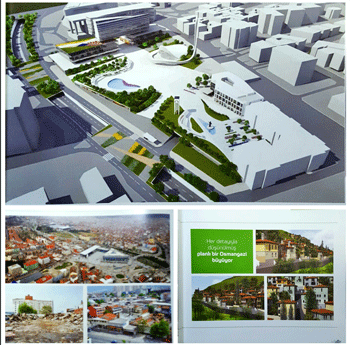 7 yıl önce göreve ilk geldiğinde oluşturduğu Şehircilik Akademisi’nin hayaller ile yola çıkıp vizyon projeler üretmesinin ve Türkiye’de ilk defa kentsel dönüşüm master planı yapmış olmanın verdiği haklılığı da sergiledi.