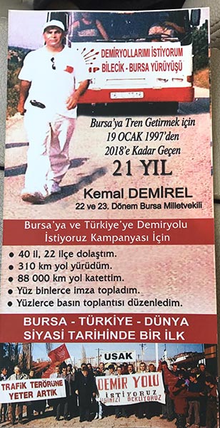 Dile kolay… CHP Bursa eski Milletvekili Kemal Demirel 19 Ocak 1997’den bugüne 88 bin kilometre yol kat etti, 40 il ve 22 ilçede basın açıklaması yaptı.