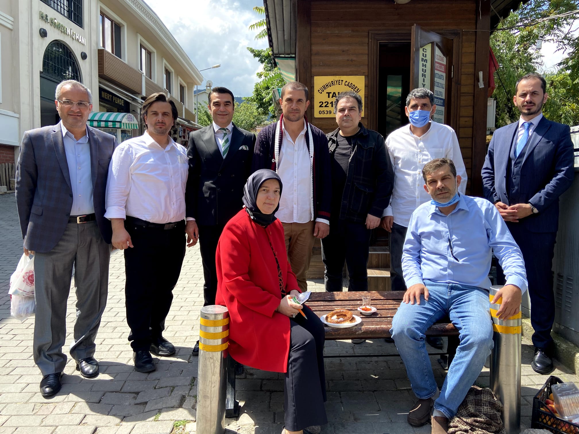 AK Parti Bursa Milletvekili ve Genel Merkez Kadın Kolları Teşkilat Başkanı Emine Yavuz Gözgeç dün “simit bizden, çay sizden” deyip Cumhuriyet Caddesi esnafını ve taksi durağını ziyaret etti.