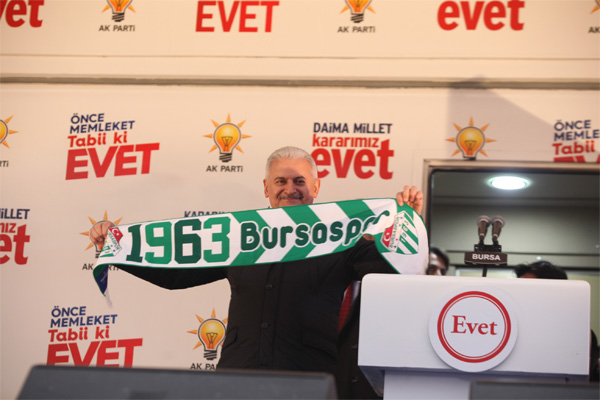 Gerçi… Ezbere bildiği ve iyi tanıdığı içi değil, önündeki ekrandan okuyarak söylüyor, ama Başbakan Binali Yıldırım mahalle mahalle Bursa’yı sayınca toplanan kalabalığın çok hoşuna gitti. İlçeleri sıraladığında mutluluk arttı.