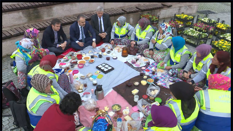Sürpriz bir şekilde Büyükşehir Belediye Başkanı Alinur Aktaş katıldı. BUSKİ Genel Müdürü Güngör Gülenç ve Park-Bahçeler Daire Başkanı Hakan Bebek, parktaki yer sofrasında sohbet edip kahvaltı yapan Aktaş kadın işçilerin 8 Mart Dünya Emekçi Kadınlar Günü’nü kutladı.