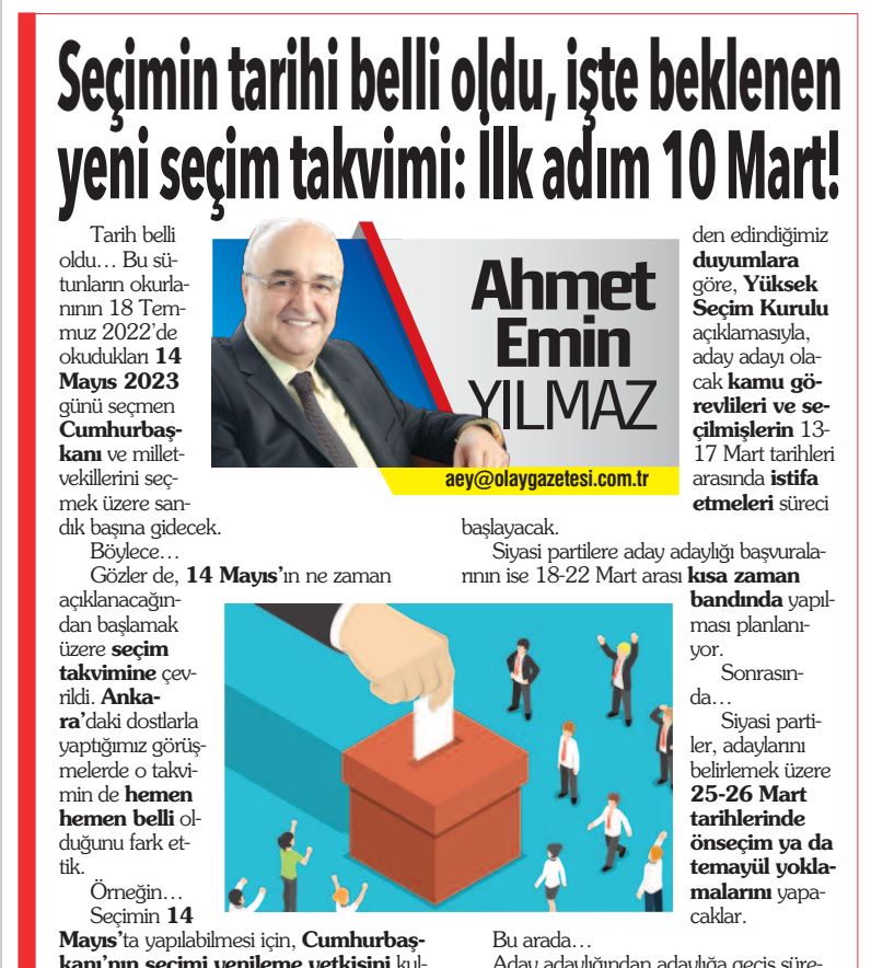 Seçimin 14 Mayıs’ta yapılacağını ilk söyleyen ve 18 Temmuz 2022 günü duyurmamızı sağlayan Ankara’daki dostumuzla siyaset gündemini konuştuk.