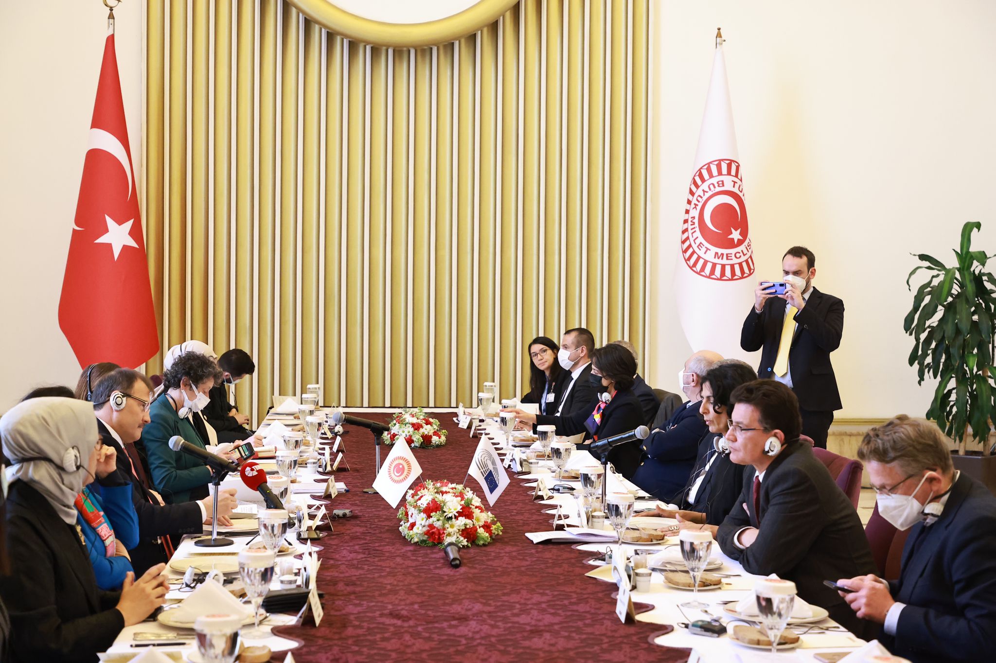 Maria Arena başkanlığındaki 13 kişilik AB Parlamenterler Meclisi İnsan Hakları Alt Komitesi heyeti Ankara’da TBMM İnsan Hakları Komisyonu Başkanı Hakan Çavuşoğlu ve alt komisyon başkanlarıyla görüştü.