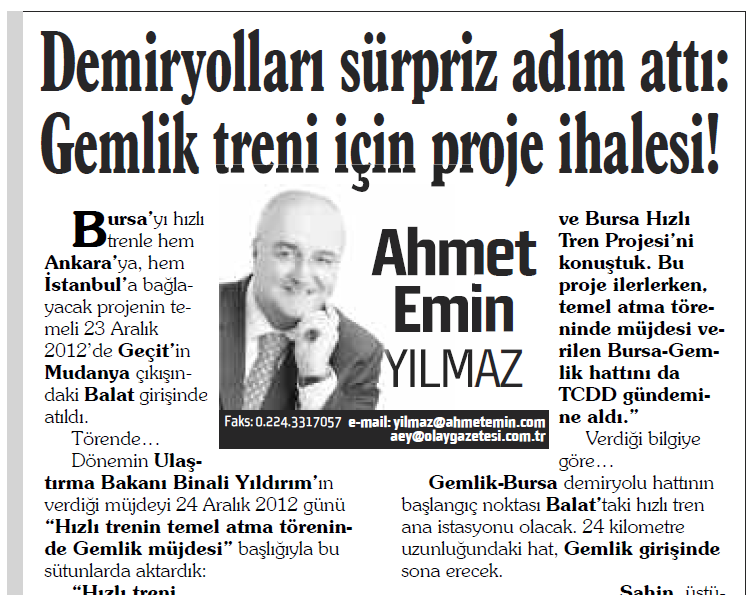 “Bursa-Gemlik arası ve Bursa-Balıkesir arası demiryolu güzergahının analizi uygun görülmesi halinde rezervasyonların yapılmasına…”