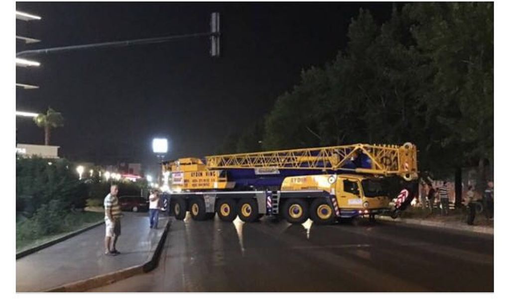 İstanbul Caddesi üzerinde Hilton Oteli’nin önü de dev bir vinçle kapatılıyor.