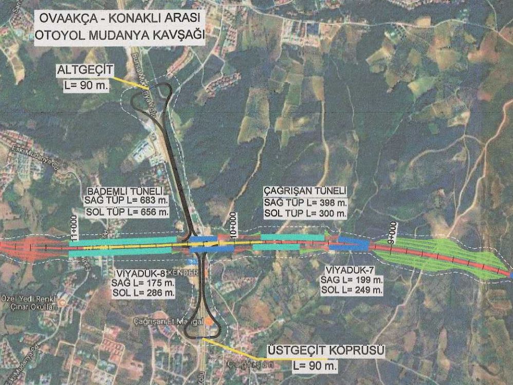 Çağrışan’ın batısında, Mudanya Üniversitesi yakınlarına yapılacak tünelden çıkıp, eski Köy Restoran yakınlarından viyadükle Mudanya Yolu’nu geçecek.