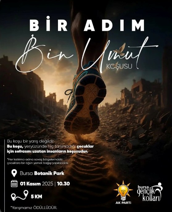 Savaş bölgesi Gazze’de kaybedilen canları anmak ve yaşayanlara destek için Bir Adım Bin Umut Koşusu adıyla düzenlenen etkinlik 1 Kasım Cumartesi günü Botanik Park’ta saat 10.30’da başlayacak.