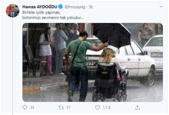 Aksaray Valisi Hamza Aydoğdu bir fotoğrafı “Birlikte iyilik yapmak, birbirimizi sevmenin tek yoludur” mesajıyla Twitter’da paylaştı.