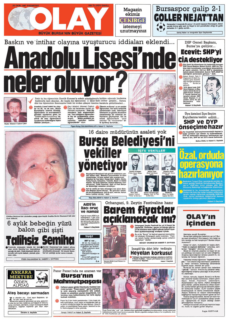 36 yıldır Bursa’nın gözü, kulağı, en önemlisi de sesi olan Olay bu süreçte yayıncılık çizgisiyle ekol oluşturdu, Anadolu’daki yerel gazeteciliğin önderi haline geldi.