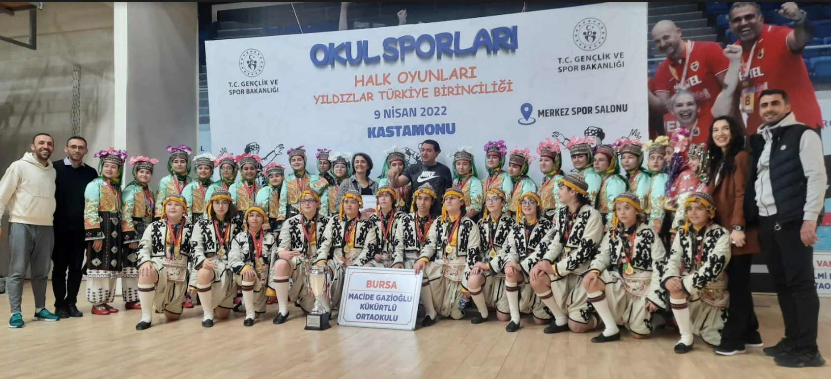 Bursa, Burdur, Kastamonu, Artvin, Antalya, Kütahya, Adana, Van, Sivas illerinden 9 okulun katıldığı Okul Sporları Halkoyunları Yıldızlar Türkiye Birinciliği’nde şampiyonluğa Macide Gazioğlu Kükürtlü Ortaokul u ulaştı.
