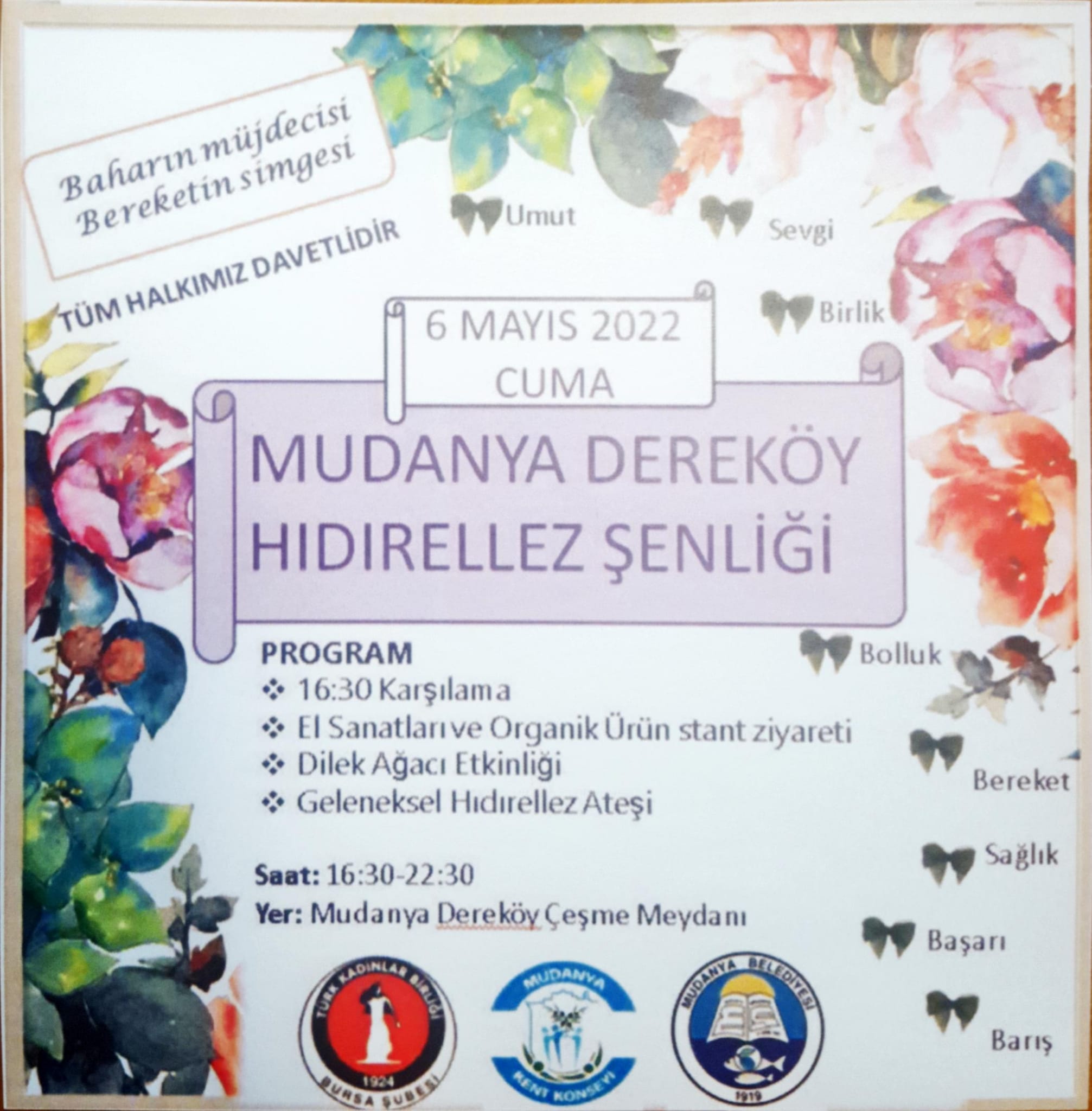 İlki, 6 Mayıs Cuma günü saat 16.30’da Türk Kadınlar Birliği’nin Mudanya Dereköy’deki kutlaması. 8 Mayıs’ta da Nilüfer 23 Nisan Mahallesi Muhtarı Sevda Bayraktar’ın programı olacak.