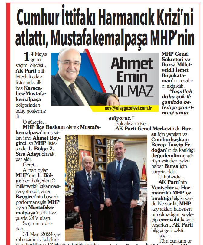 Yazdığımız gibi: Mustafakemalpaşa MHP’nin, adayı da Ahmet Beygirci