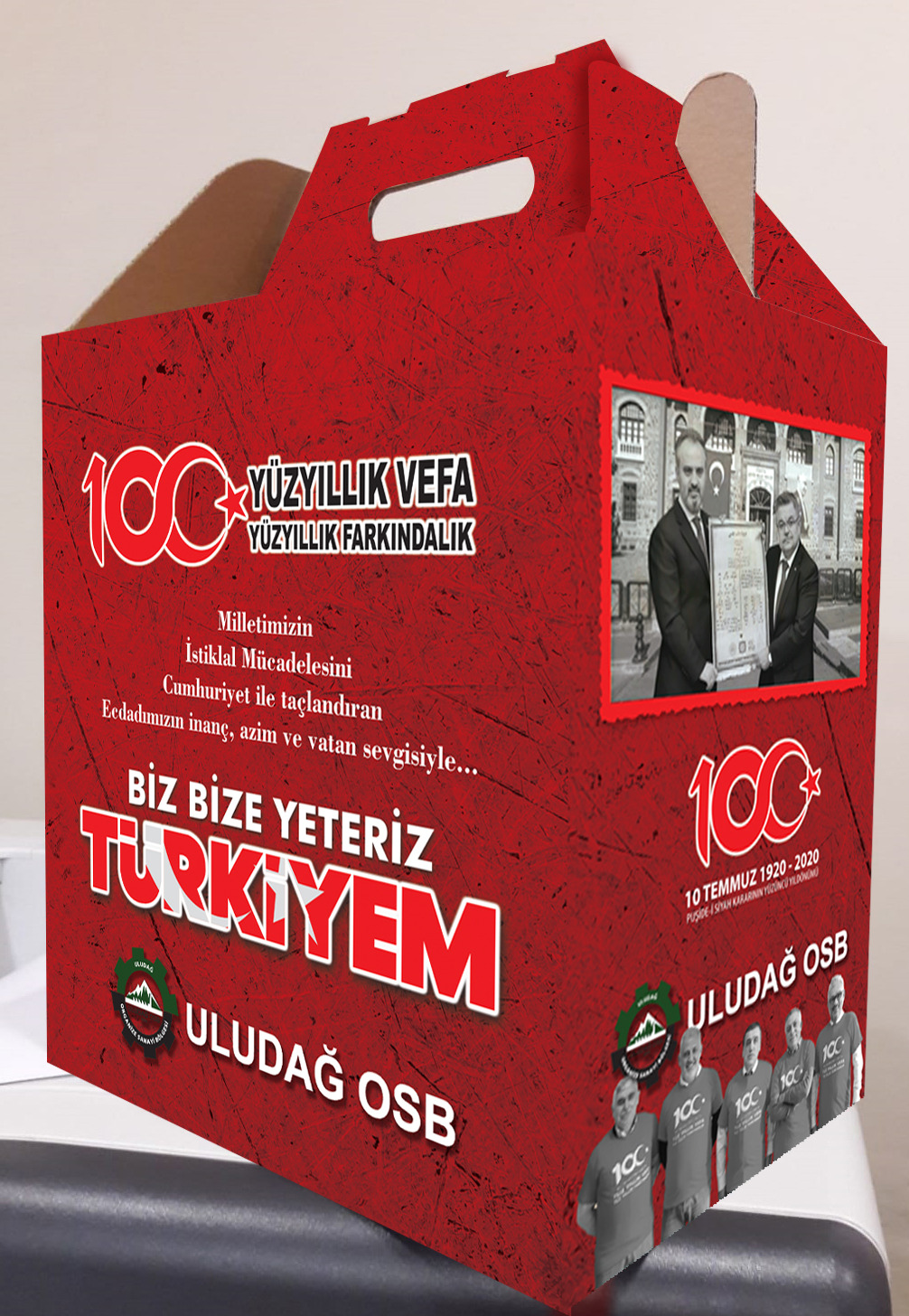 Uludağ OSB hem içinde bulunduğumuz sıkıntılı süreci, hem de Cumhuriyetin yüzüncü yılı nedeniyle başlatılan Yüzyıllık Vefa hareketini birleştiren bir uygulama yaparak çalışanları için vefa paketleri hazırlamış.