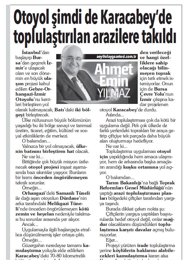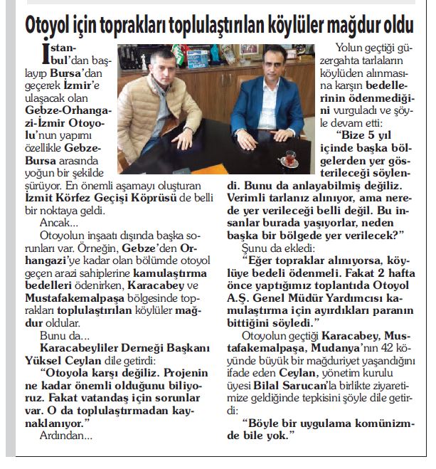 Ceylan’ın; otoyolun geçtiği Karacabey, Mustafakemalpaşa, Mudanya’nın 42 köyünde büyük bir mağduriyet yaşandığını söylediğini ve bunu önlemek için yargıya başvurduklarını da duyurduk.