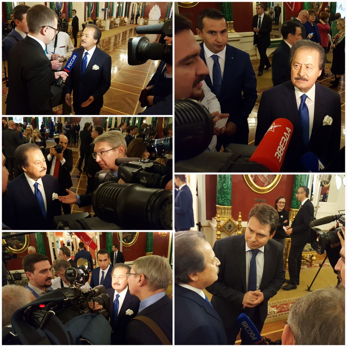 Çağlar tören salonun girişinde hem Rus hem de Avrupa televizyonlarının gözdesi oldu.