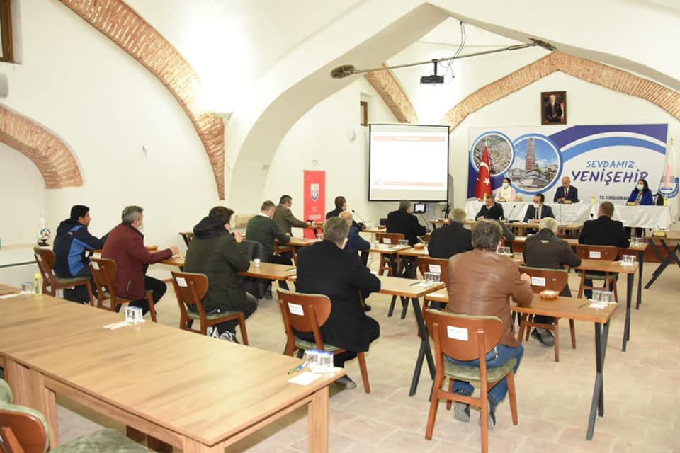 Büyükşehir Belediye Meclisi toplantıları Merinos Atatürk Kongre Kültür Merkezi’ne taşındı. Yenişehir Belediye Başkanı Davut Aydın da meclis toplantısını tarihi Sinanpaşa Külliyesi’nde yapmış.